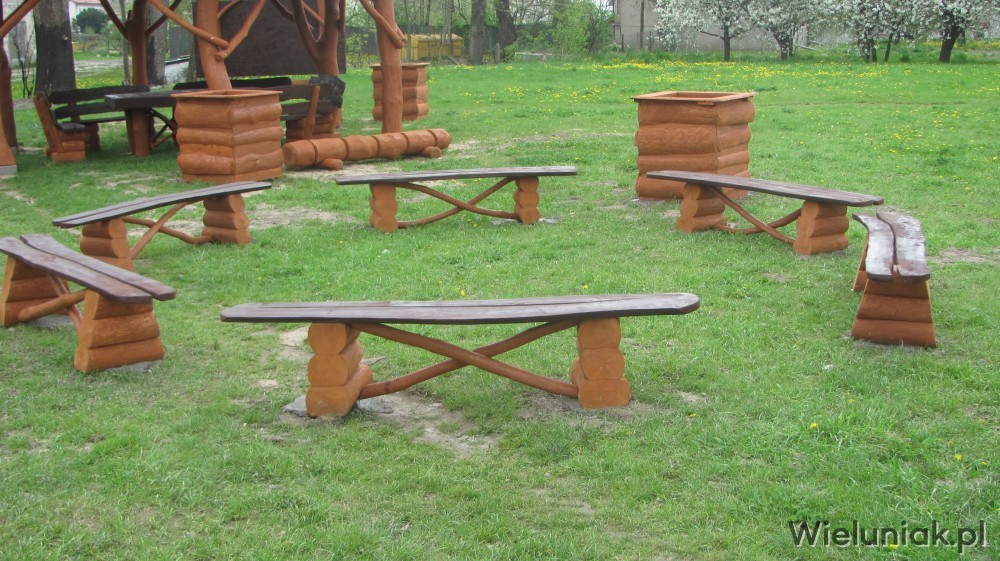 Ławka ogrodowa wykonana jest z bali oraz desek brzozowych. Z kolei siedzisko ławki wykonujemy z desek brzozowych gr. 38 mm. Ławki są dwukrotnie impregnowane Drewnochronem w wybranym przez klienta kolorze. Istnieje możliwość wykonania zdobień na ławkach.