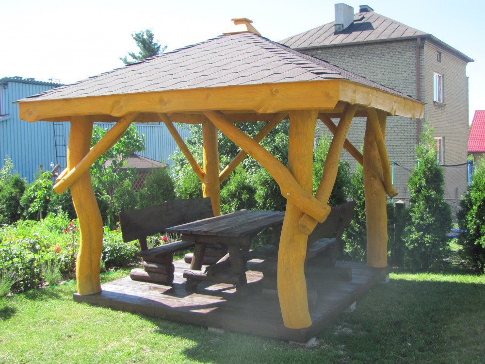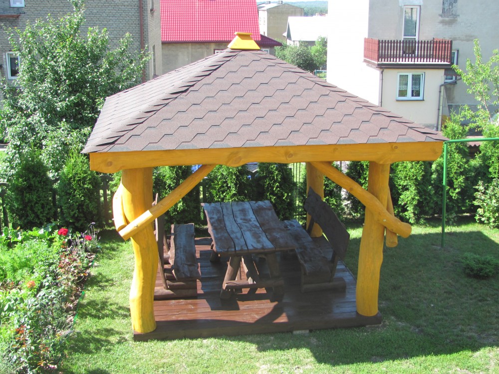 7. Miecze wspierające altanę wykonane z okrąglaków.