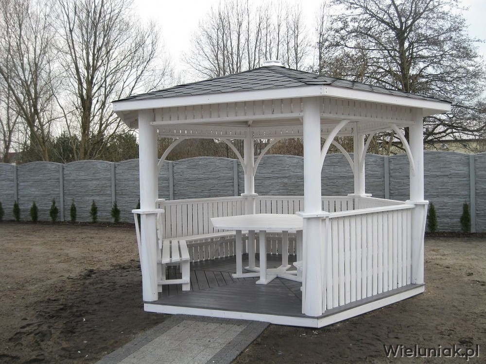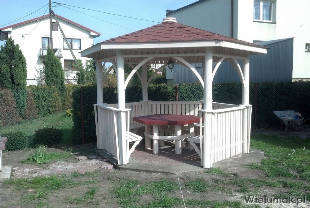 - 5 ławek mocowanych do altany,