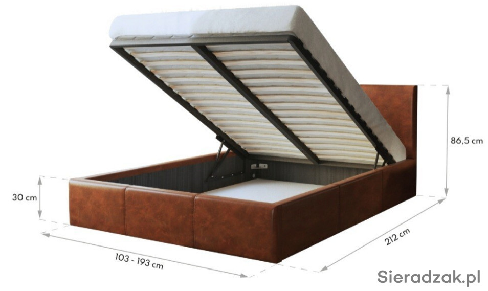 Podnoszony stelaż metalowy- stelaż wspierany jestmechanizmem podnoszenia - dwa siłowniki gazowe. Posiada brzozowe sprężynujące listwy, które pracują pod naciskiem naszego ciała, każda listwa umieszczona jest wplastikowej kieszonce, dzięki czemu łóżko nie skrzypi.