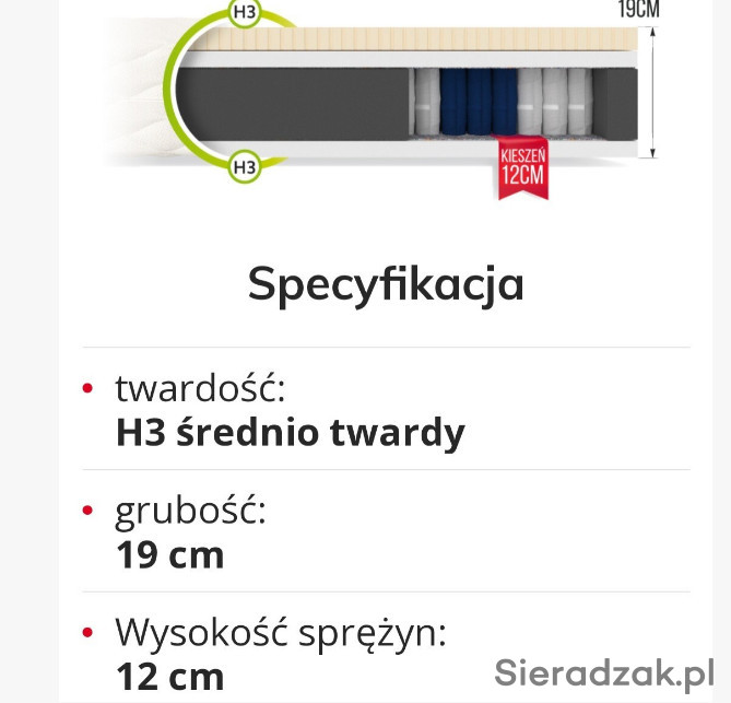 Wysokość sprężyn – 12cm