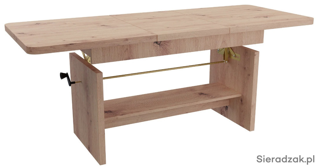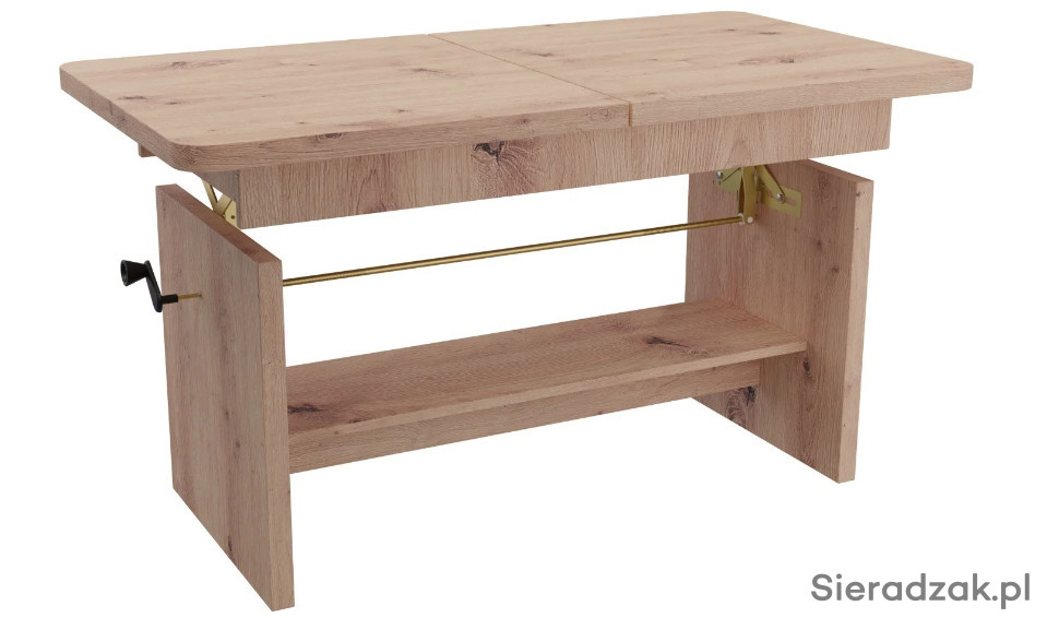 Ławo-stół JANEK to funkcjonalny, rozkładany stolik na potrzebny naszych rodzinnych spotkań. Na co dzień może stać w salonie w wersji mniejszej, a jeśli potrzeba to szybkim ruchem możemy go powiększyć z 116 cm na 156 cm! Do tego, jeśli nie dysponujemy dużym metrażem, może posłużyć jako stół na rodzinne obiady, dzięki podwyższeniu ławy z 59 cm na 70 cm. Ława jest dostępna aż w 14 wersjach kolorystycznych! Stolik jest solidny i przetrwa nie jedno przyjęcie. Wyposażony został w podręczną półkę, która przyda się na odłożenie gazet, książek lub pilota od telewizora.