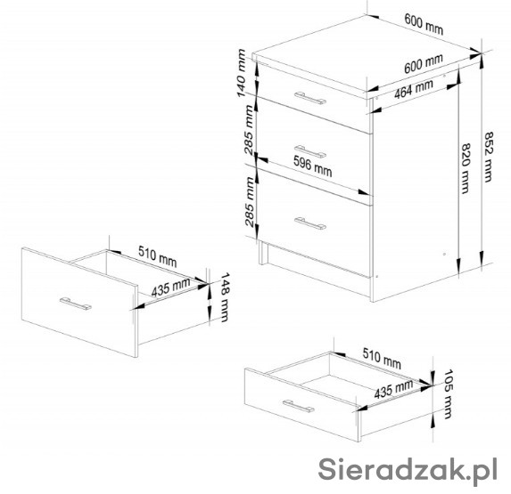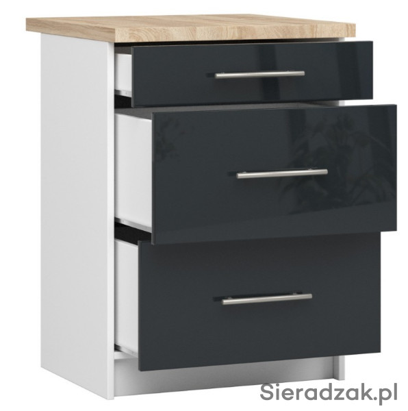 5.SZAFKA KUCHENNA OLIWIA S 60cm 3S BIAŁA-GRAFIT POŁYSK - 1SZT.