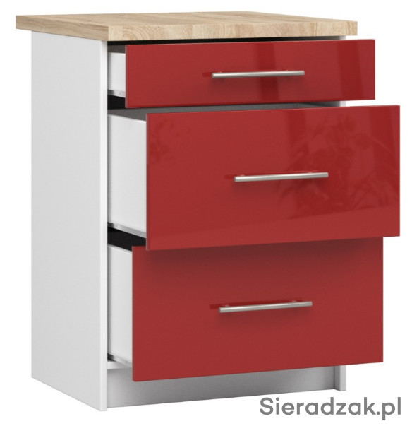 5.SZAFKA KUCHENNA OLIWIA S 60cm 3S BIAŁACZERWONY- POŁYSK - 1SZT.