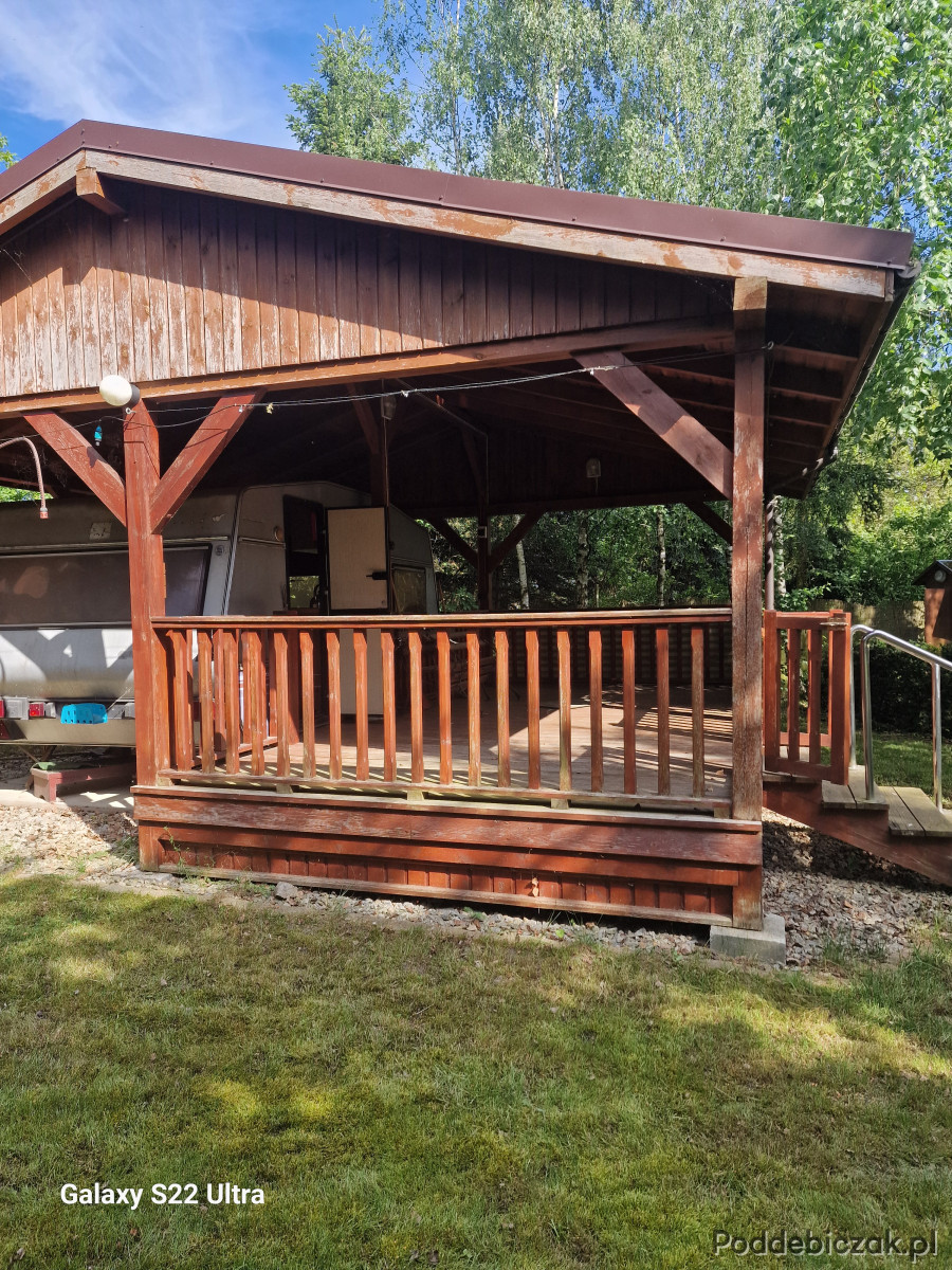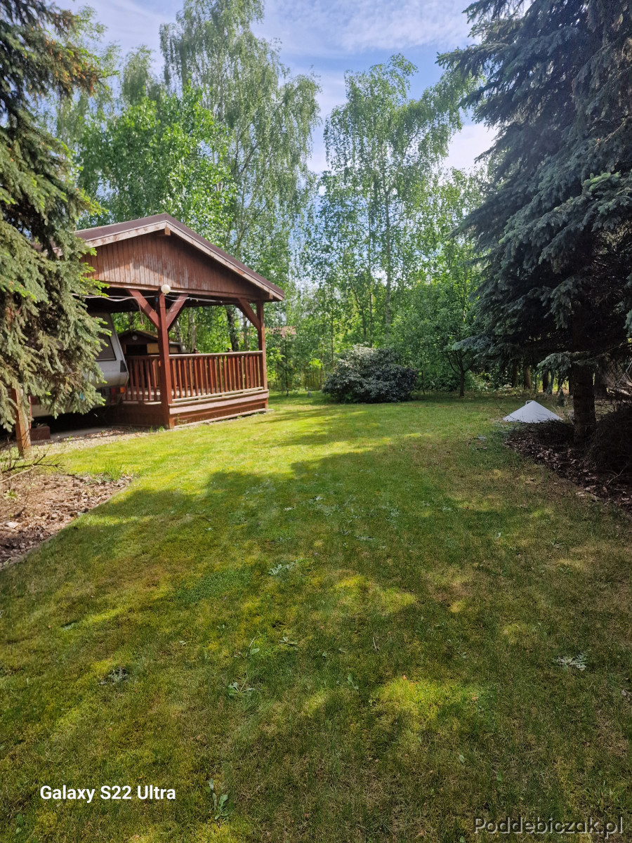 Na działce znajduje się przyczepa kempingowa, która może służyć jako wygodne miejsce do spania podczas letnich wieczorów w otoczeniu natury. Obok przyczepy zlokalizowany jest grill, idealny do przygotowania pysznych potraw na świeżym powietrzu. Dodatkowo, altana zapewnia schronienie przed słońcem i deszczem oraz jest doskonałym miejscem do relaksu i spożywania posiłków na zewnątrz.
