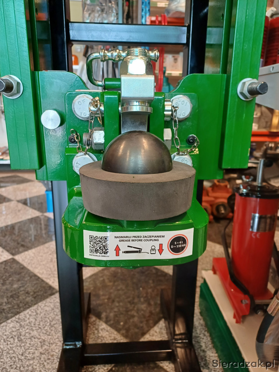 Zestaw w kolorze zielonym zawiera zmontowany zaczep kulowy k80 z płytą adaptacyjną, gotowy do zainstalowania w ramie ciągnika: Waga - 50kg