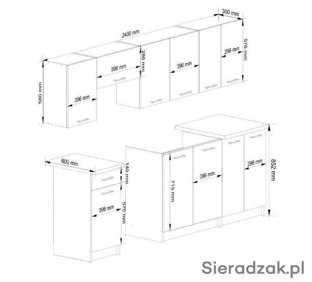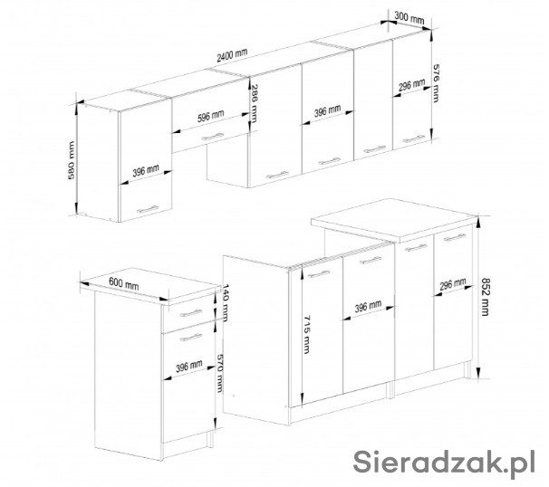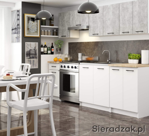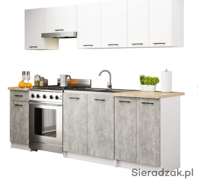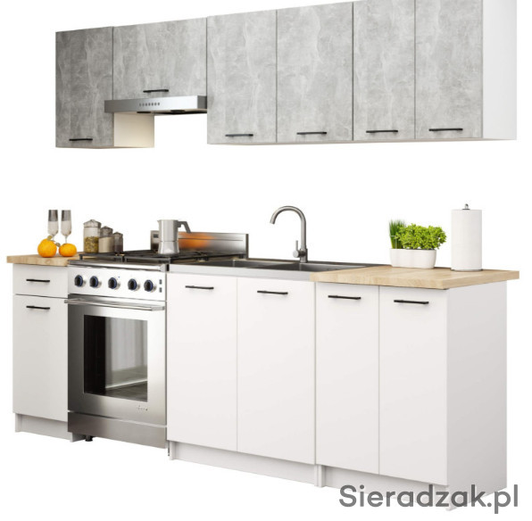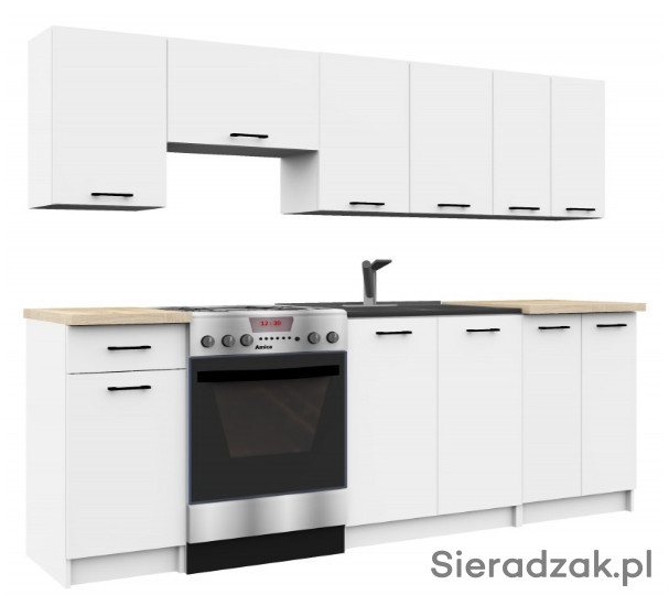 Zestaw kuchenny AKORD OLIWIA 2.4m Biały 240 cm 11 drzwi 1 szuflada kolor Biały mat 12 półek 240x46x203 cm
