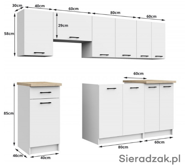 Blat o głębokość 60cm w kolorze dąb sonomaSzafki wykonane z płyty laminowanej w kolorze białym