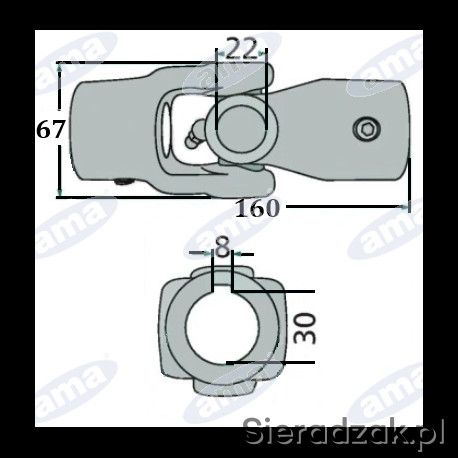 Przegub kompletny pojedynczy, kat. 1, z obu stron otwór, fi 30, wpust 8, zamiennik FELLA TH 440 520