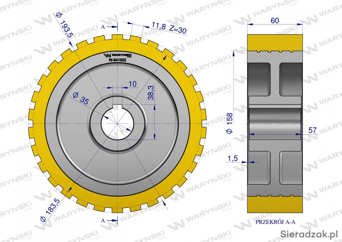 Rolka napędowa zębata PU 194x60x35 nr kat. 07600704