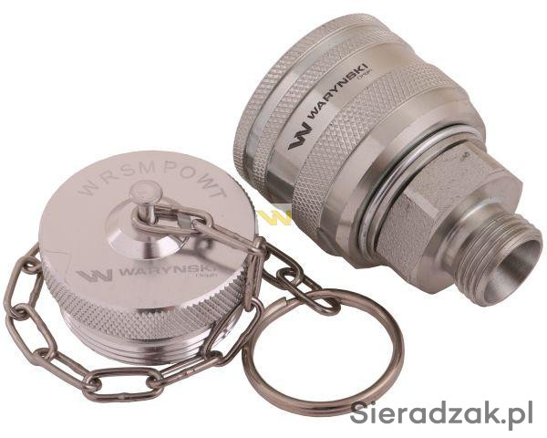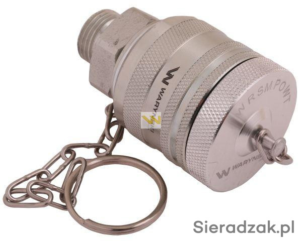 Komplet - zawór wtyczka (Bizon) M18x1.5 skręcane (ZSR6160102) z gwintowaną pokrywą/osłoną aluminiową Waryński. Najpopularniejsze zawory hydrauliczne starego typu o bardzo szerokim spektrum zastosowań w rolnictwie. Zaprojektowane są zgodnie z wymogami wymiarowymi i jakościowymi, które określają szczegółowo charakterystykę pracy i wymiary. Dzięki mocnej kontrukcji nadają się do zastosowań podczas trudnych warunków pracy maszyny rolniczej. Pokrywa aluminiowa (korek) z gwintem zewnętrznym z łańcuszkiem idealnie pasuje do zaworów skręcanych - wtyczek serii WRS Waryński. Zabezpiecza szybkozłącze i układ hydrauliczny przed wszelkiego rodzaju zabrudzeniami podczas pracy.