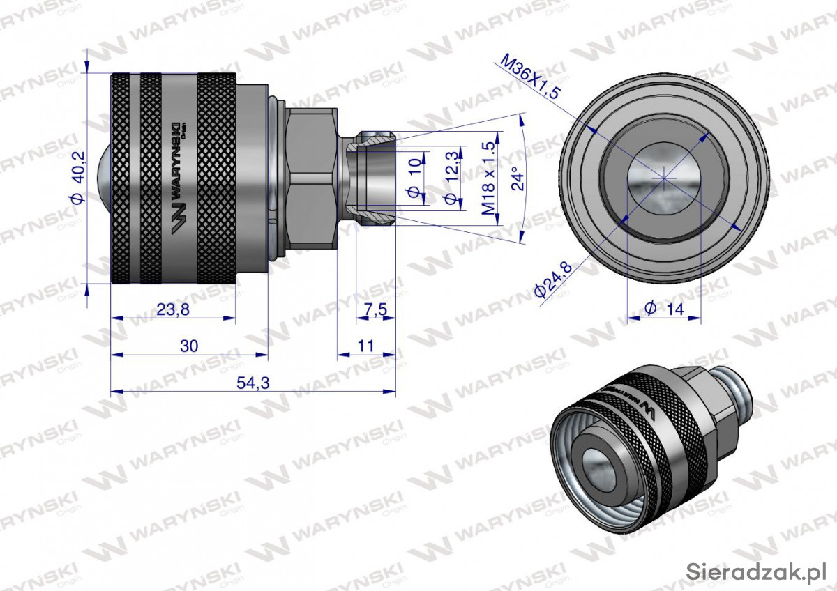 Gwint: Zewnętrzny M18x1,5