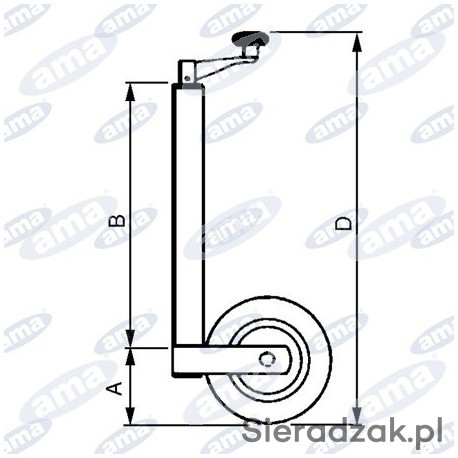 Stopa podporowa z kołem w wersji ocynkowanej, koło gumowe ze stalową felgą o rozmiarze 200x50mm.