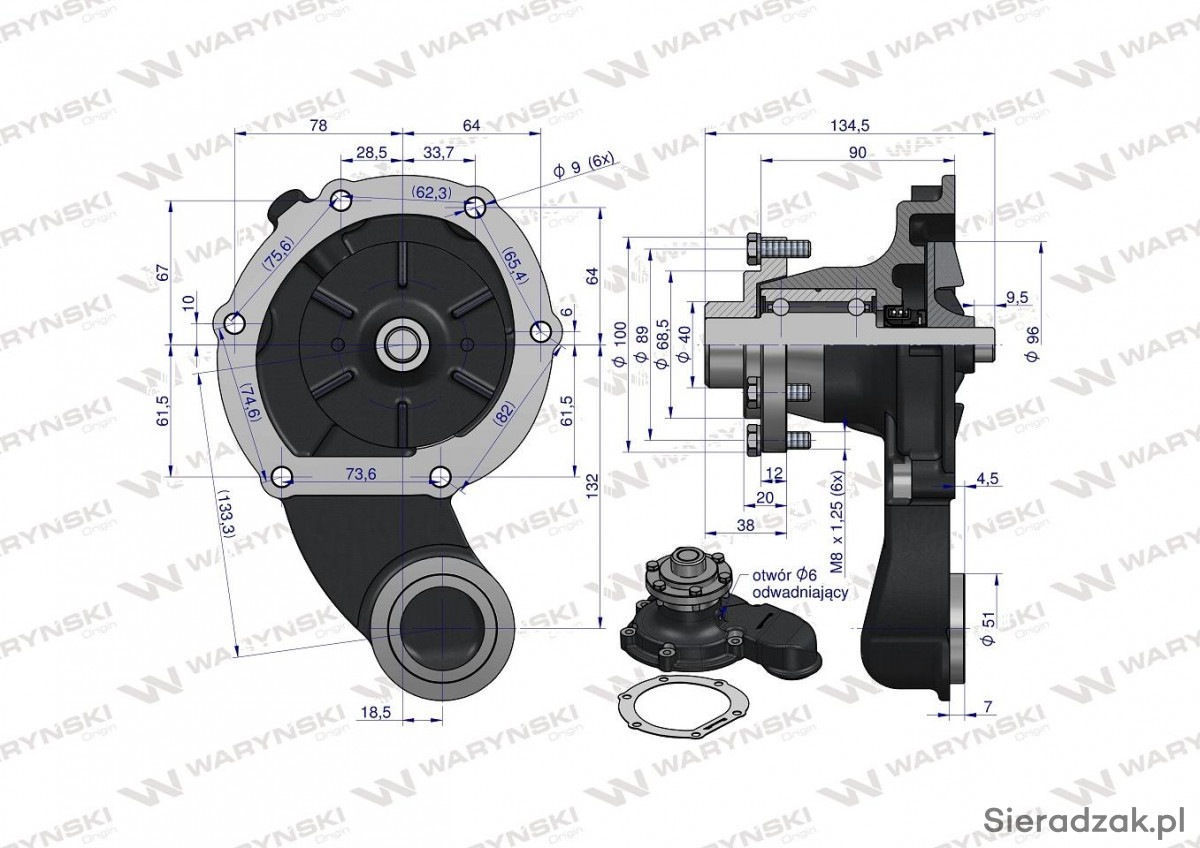 Pompy wody WARYŃSKI produkowane z najwyższej jakości komponentów, Dodana uszczelka wykonana z Krążelitu, Wirnik metalowy