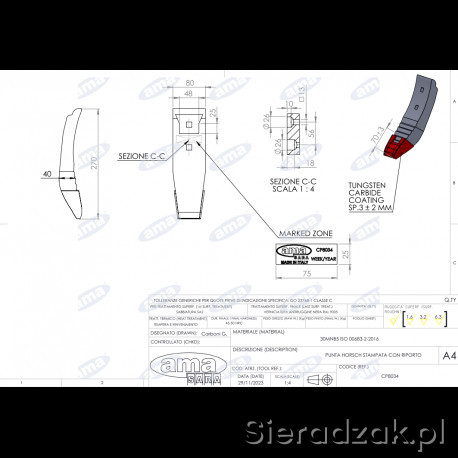 Dłuto odkuwka - dwuotworowe napawane 1/4