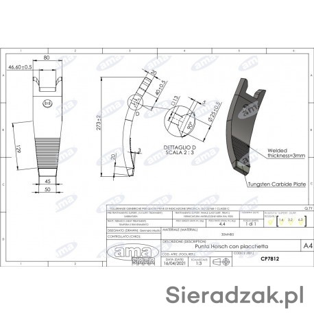 Dłuto grządzieli wzmocnione + płytka 80X20