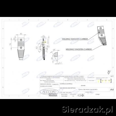 Dłuto wykonane z wysokiej jakości materiału, charakteryzuję się zwiększoną odpornością na ścieranie, wzmocnione napawaniem ,które zdecydowanie wydłuża żywotność dłuta.