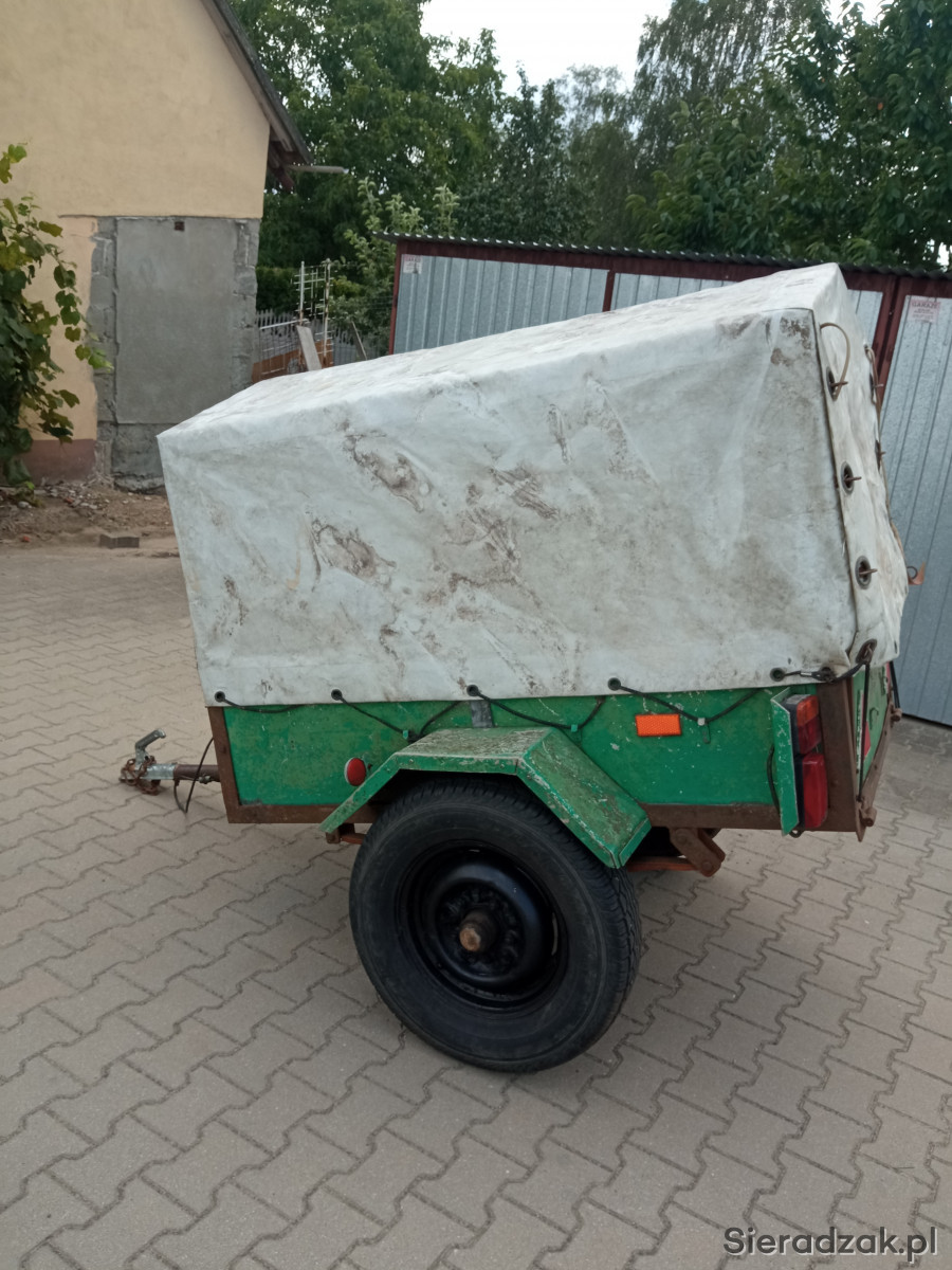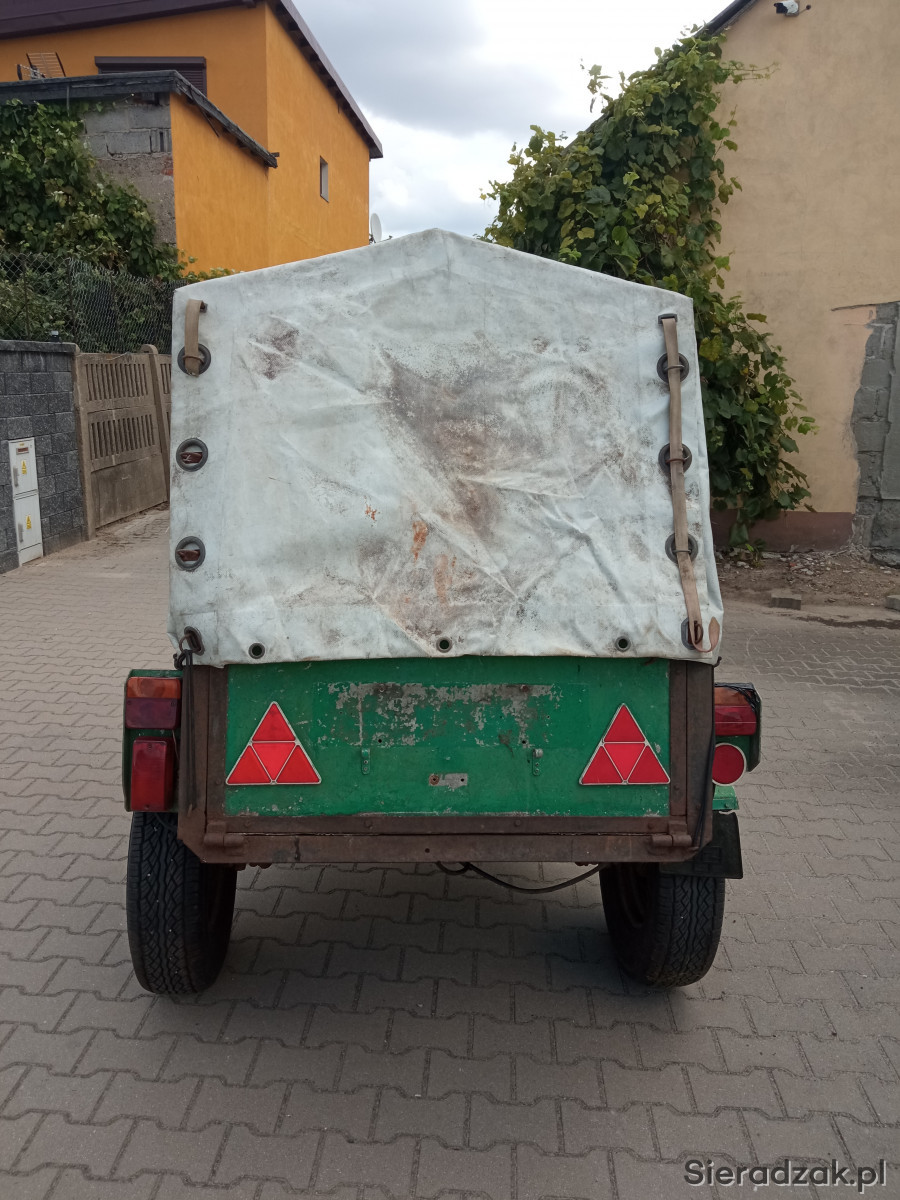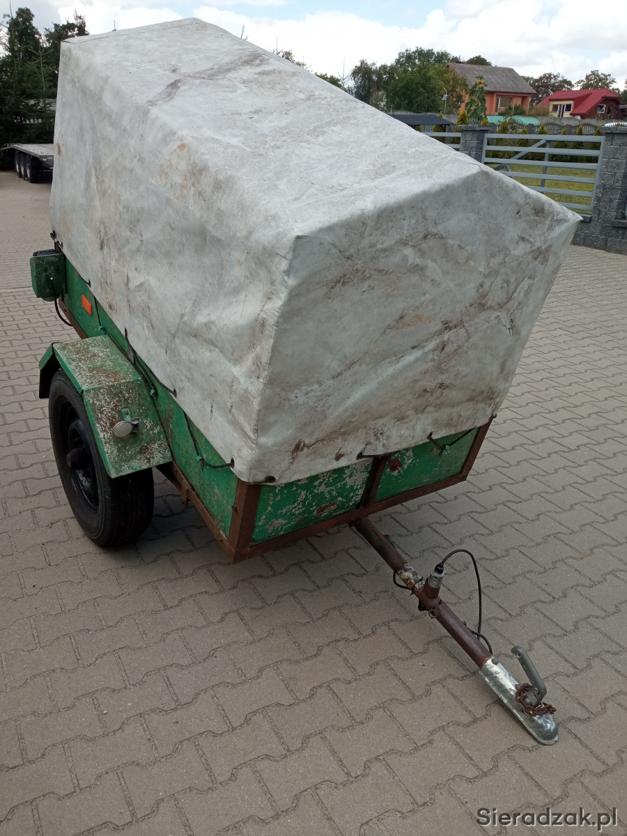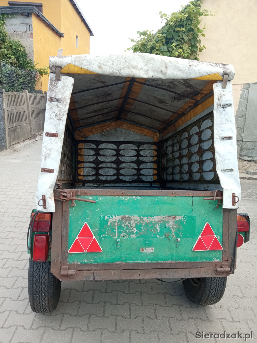 Sprzedam przyczepę towarową SAM bardzo mocna solidnie wykonana. Przyczepa ma wymiary 1.6x1.0x1.15 wysoka pod plandeką. Plandeka szczelna, instalacja sprawna opony w bardzo dobrym stanie co widać na zdjęciach.kola 15 cali bardzo mocne. Podłoga i burty wykonane z grubej aluminiowej blachy, stalowe nadstawki nad burty, nowy zaczep. Zawieszenie resor plus amortyzator prowadzi się bardzo dobrze. Przyczepa sprawna technicznie, można bez problemu wracać na kołach, jeszcze na pewno komuś posłuży w gospodarstwie lub do lasu. Przyczepa bez prawa rejestracji. Istnieje możliwość taniego transportu. Do 50 kilometrów od Sieradza transport gratis. Kontakt tel 6 0 5 2 1 2 1 3 7
