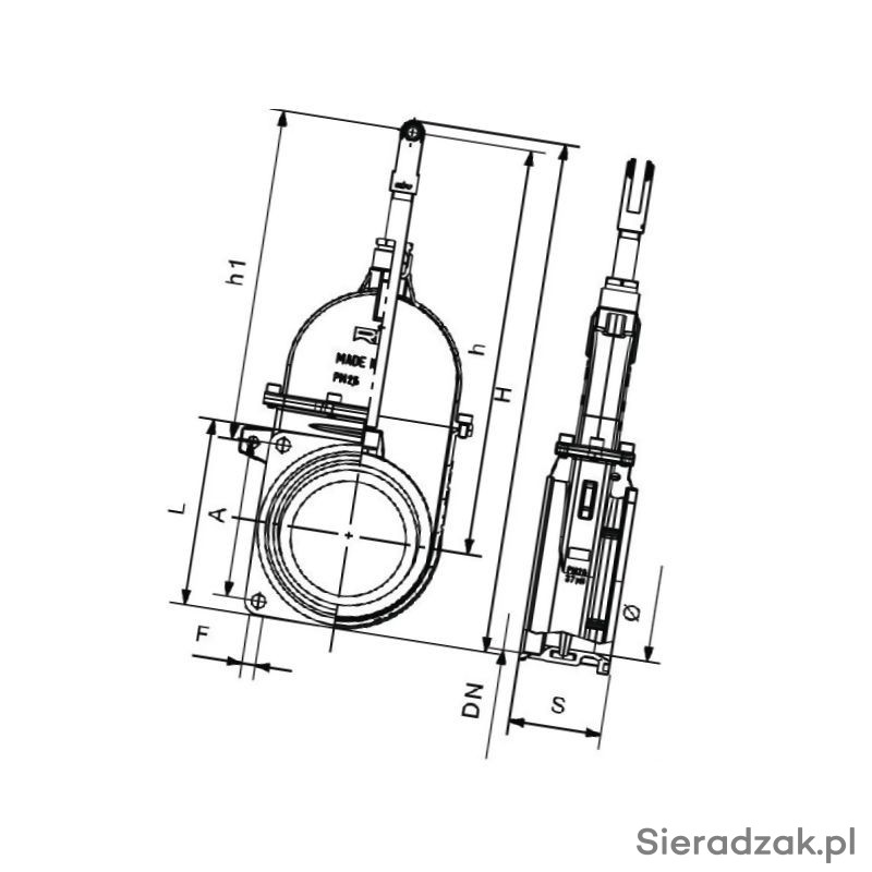h - Odległość od środka otworu zasuwy do otworu dźwigni (pionowy) - 390 mm
