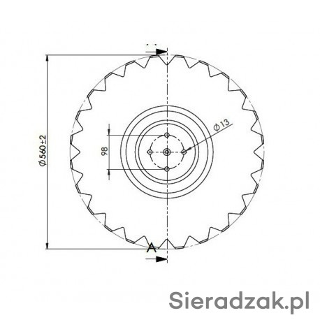 Talerz do brony drobnoząbkowany, 560 mm, 98x4 otwory, grubość 4 mm