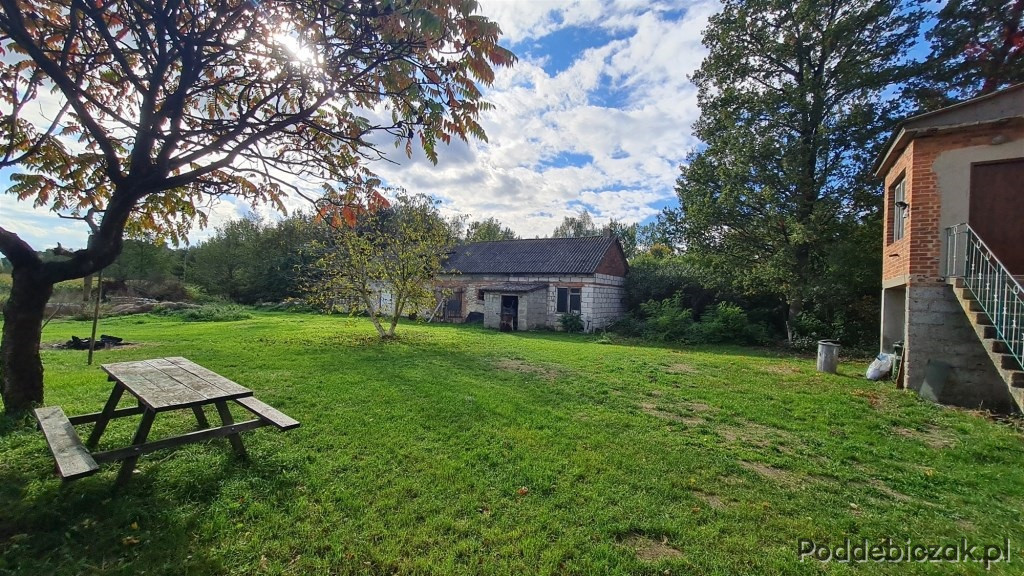 Dom aktualnie znajduje się na działce do wydzielenia, częściowo ogrodzonej siatką z nową bramą i furtką. Działka podlegająca sprzedaży w wyżej wymienionej kwocie posiadać będzie powierzchnię około 3000 m2 z możliwością wydzielenia mniejszej lub większej powierzchni.