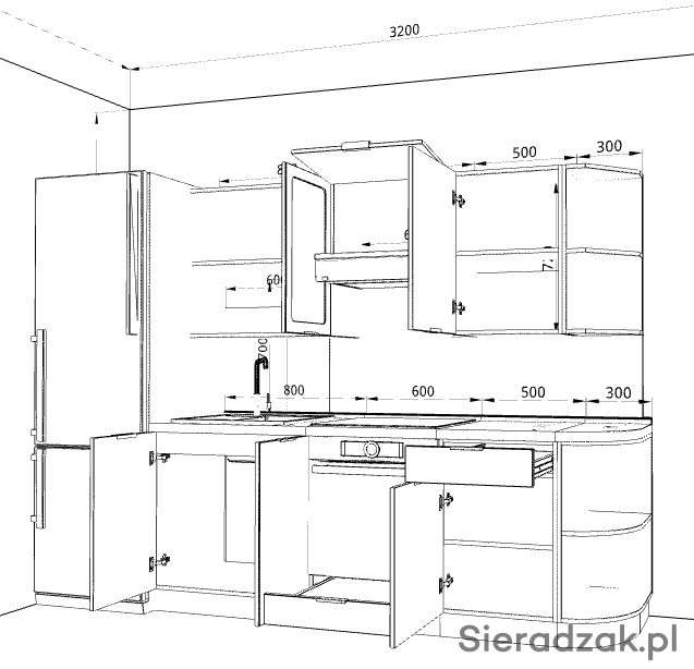 Wymiary: SZAFKY GORNY- 715 x 310 mm (wys. x gł.)