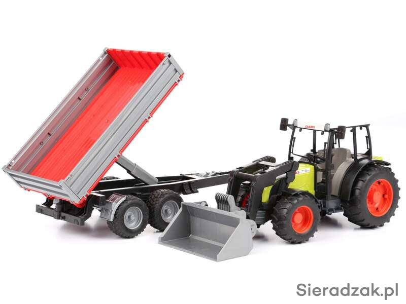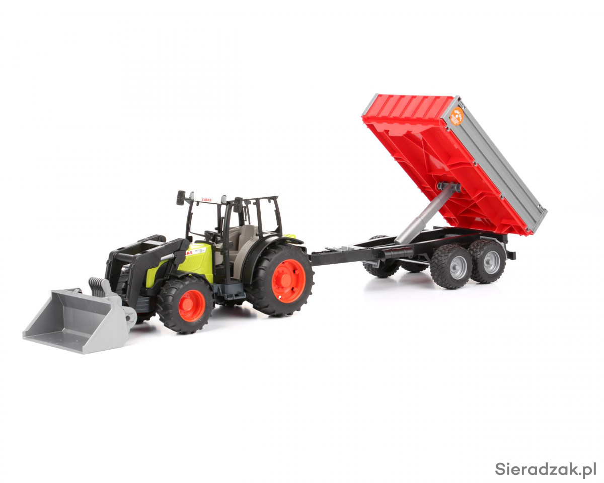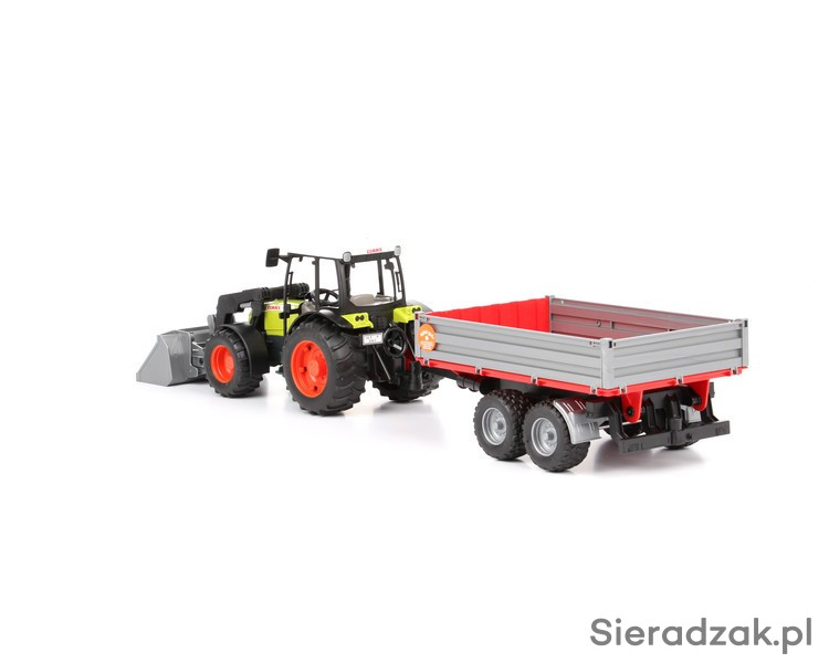 Traktor Claas z ładowaczem i przyczepą, dokładnie odwzorowany przez firmę Bruder, to świetny pomysł na zabawki dla chłopców. Dzięki gumowym kółkom, z profilowanym bieżnikiem, używanie pojazdu w domu, nie będzie zbytnio hałaśliwe i szkodliwe dla drewnianej podłogi. Zdejmowalny oraz w pełni funkcjonalny ładowacz, to dodatkowy atut tego zabawkowego traktora. Jeśli przyczepa zostanie załadowana, dzięki wywrotowi i otwieranym burtom, w pełni realistycznie przewieziemy ładunek i rozładujemy go. W trudnym terenie, przyda się aktywne zawieszenie zawarte w tym traktorze dla dzieci, a także skrętna oś przednia, którą można sterować za pomocą kierownicy wkładanej przez dach. Posiadając inne maszyny rolnicze Bruder lub figurki z serii bWorld, z pewnością dopasujemy je do tego zestawu.