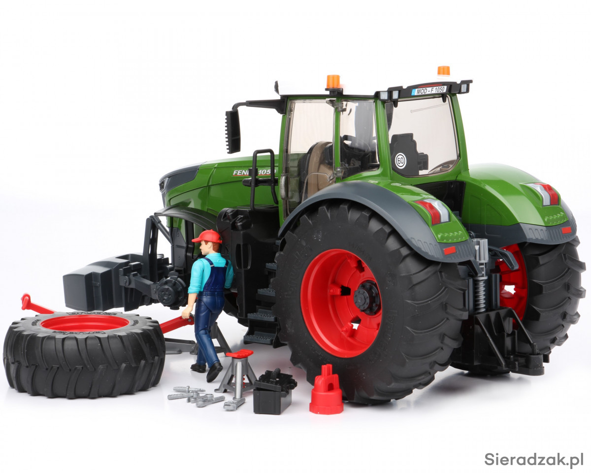 Szczegółowo wykonane ciągniki dla dzieci to specjalność firmy Bruder, eksperta w dziedzinie produkcji zabawkowych pojazdów rolniczych, maszyn budowlanych i różnego rodzaju pojazdów użytkowych. Prezentowany traktor Fendt z figurką mechanika to przykład zabawki dedykowanej dla nieco starszego dziecka, które doceni szczegółowość oraz różnorodność funkcji oferowanych przez tę zabawkę. Traktor wykonany jest w skali 1:16, w związku z czym jest to model dość dużych rozmiarów, co ułatwia zabawę dając możliwość cieszenia się z wielu dostępnych funkcjonalności tj. aktywne zawieszenie, opcja montażu i demontażu kół, podnoszenia maski silnika, otwierania kabiny kierowcy, sterowania kołami i wiele innych.