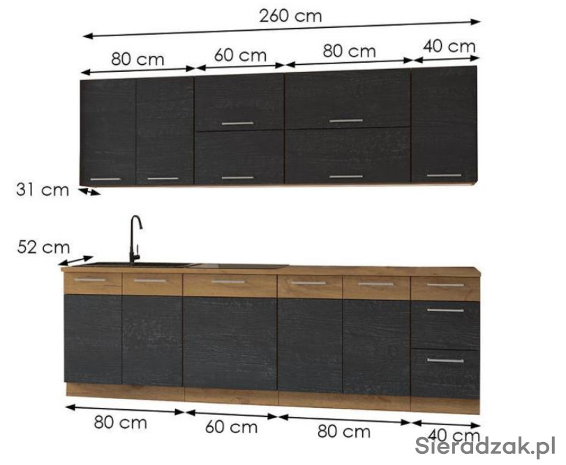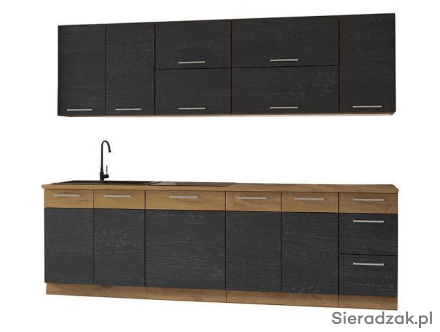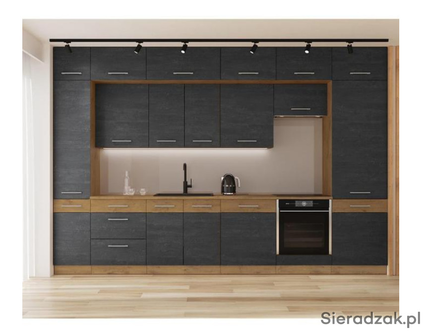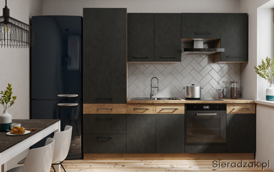 Kuchnia 180cm BOLONIA drzwi w kolorach szary mat (TRUFFLA GREY) ( płyta laminowana ), korpusy dąb artisan ( płyta laminowana ).