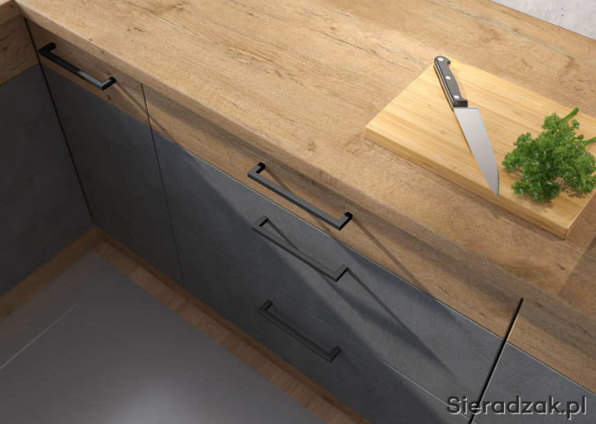 Uchwyty czarne wysokogatunkowe tworzywo , systemem cichego domyku frontów , system cichego domykania szuflad qadro.