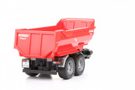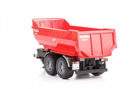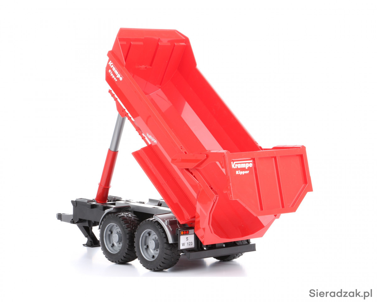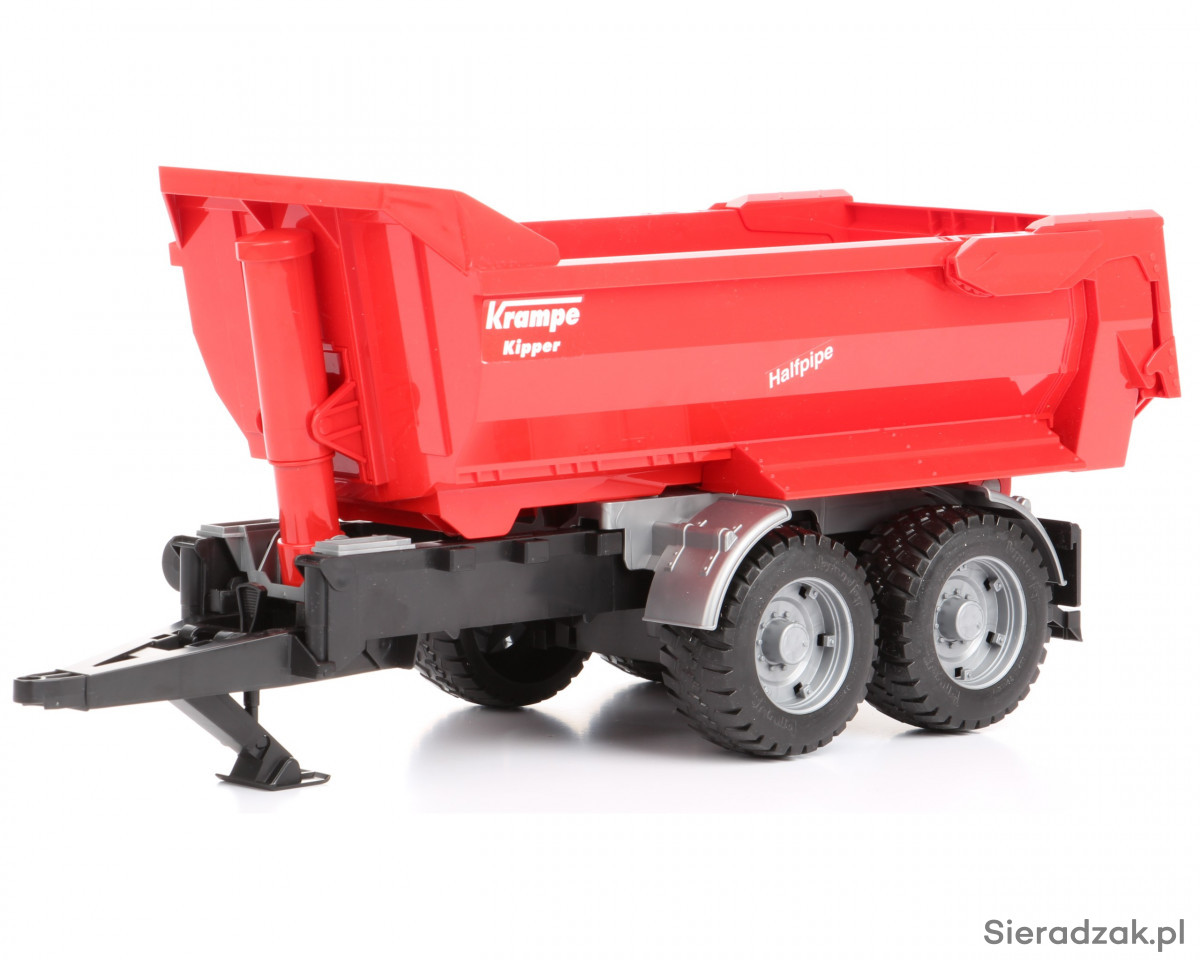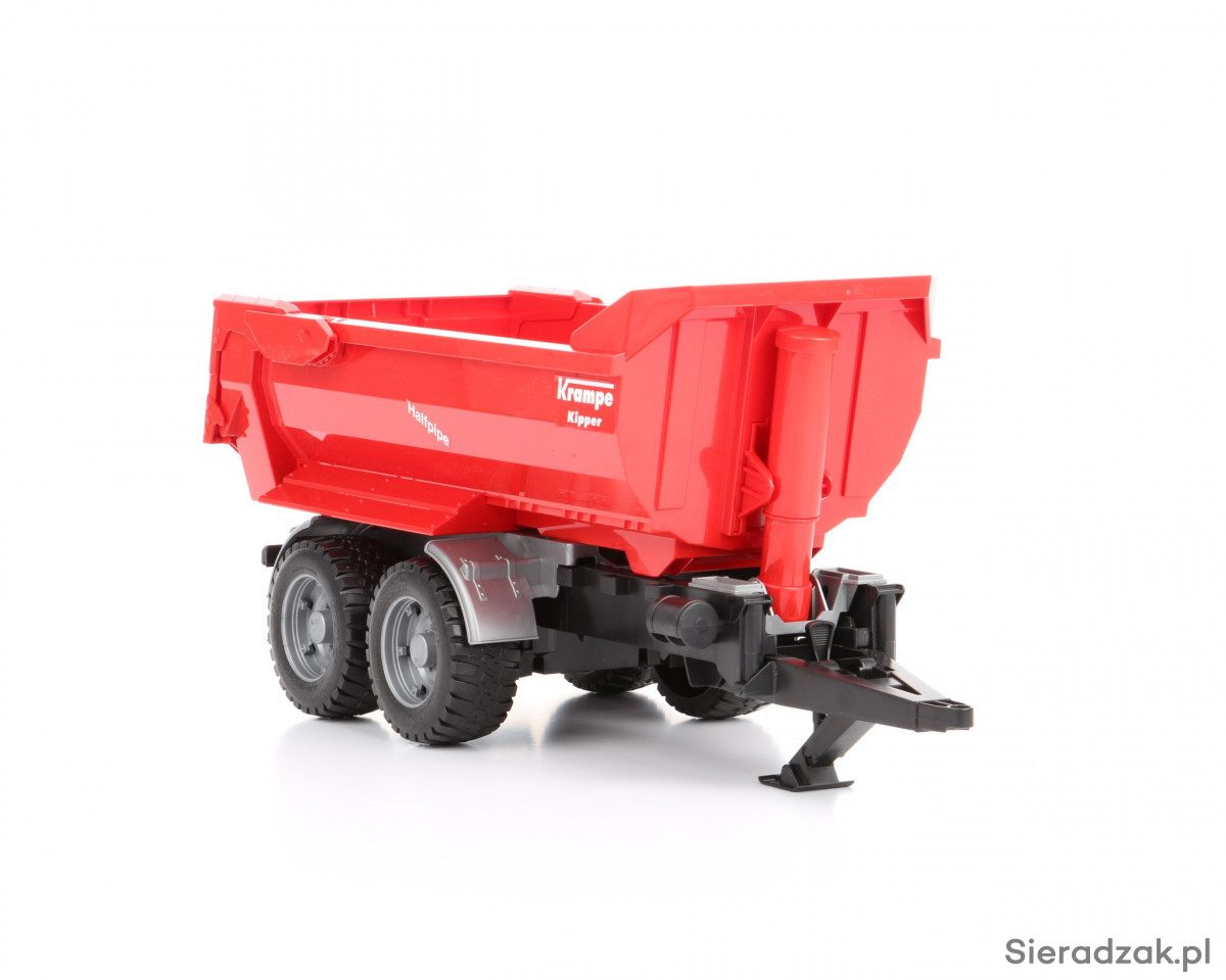 Jeśli szukasz atrakcyjnych dodatków do jednego z modeli ciągników lub innych pojazdów użytkowych Bruder, takim dodatkiem może stać się prezentowana przyczepa z wywrotem. Przyczepę możesz podpiąć do wszystkich ciągników Bruder i do części innych pojazdów tej marki. Sama przyczepa z wywrotem charakteryzuje się solidnością konstrukcji i dużą ilością niewielkich detali, które w zdecydowany sposób wpływają na atrakcyjność zabawy. Takimi detalami są m.in. koła z gumowym, miękkim bieżnikiem, centralny teleskopowy siłownik unoszący tył skrzyni do góry, co ułatwia jej opróżnianie, wysokie burty pozwalające umieścić we wnętrzu skrzyni większą ilość przedmiotów/piasku, a także uchylana tylna burta umożliwiająca szybki rozładunek przyczepy. Przyczepa to rodzaj zabawki dla chłopca, który dysponuje już jednym z ciągników Bruder. W ostateczności przyczepa może być traktowana jako zabawka samodzielna.