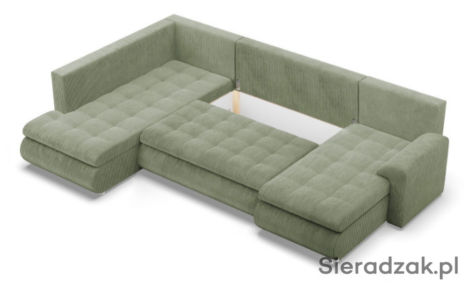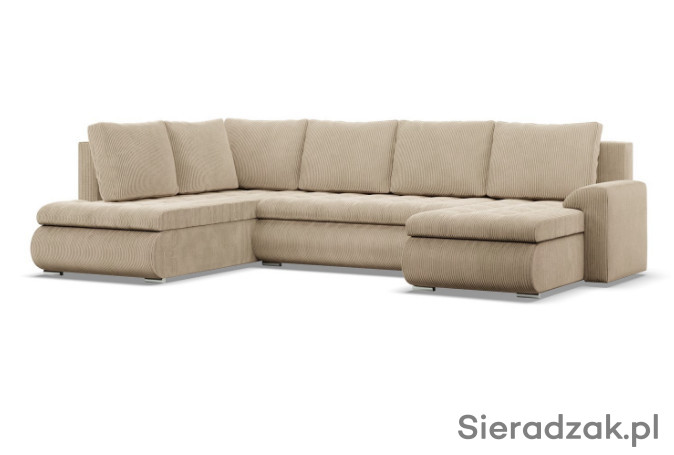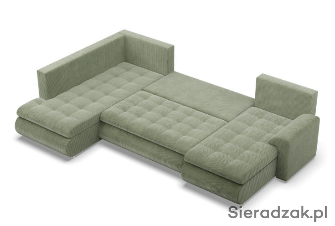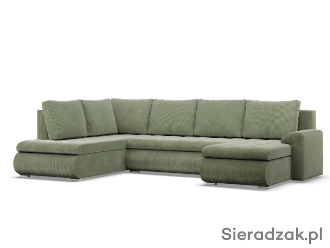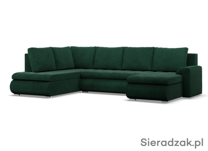 Nasz nowoczesny narożnik Foresta w kształcie litery U z otomaną i leżanką gwarantuje maksymalną wygodę oraz funkcjonalność. Klienci cenią ten mebel nie tylko za dużą powierzchnię, komfort, ale również za funkcję spania.