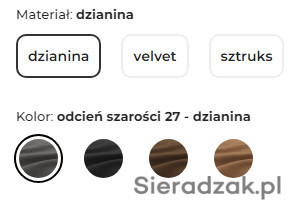 2. Materiał: velvet - 1230 zlotych.