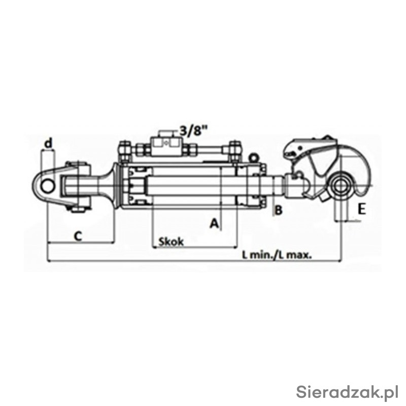 Łącznik hydrauliczny 700-945 mm z główką widełkową 32 mm hakiem 32mm kat.3.
