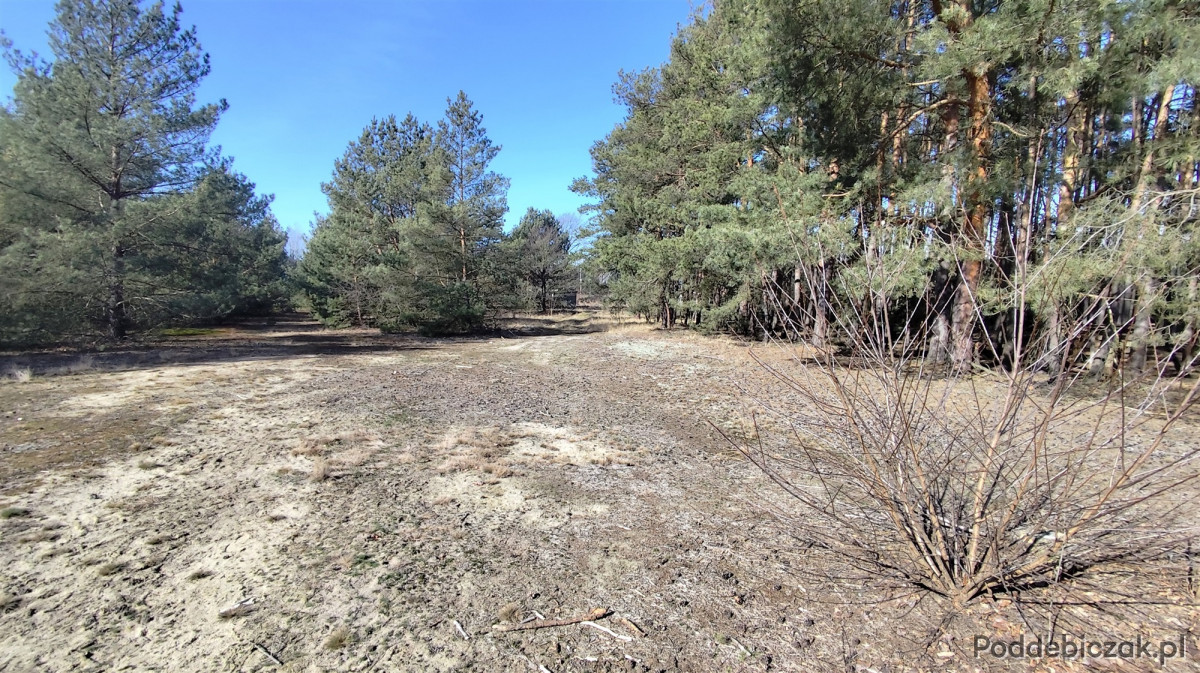 Wokół zabudowa jednorodzinna, lasy i pola uprawne.