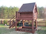 1) Elementy domku wykonane z pni drzew suchych, korowanych, szlifowanych.