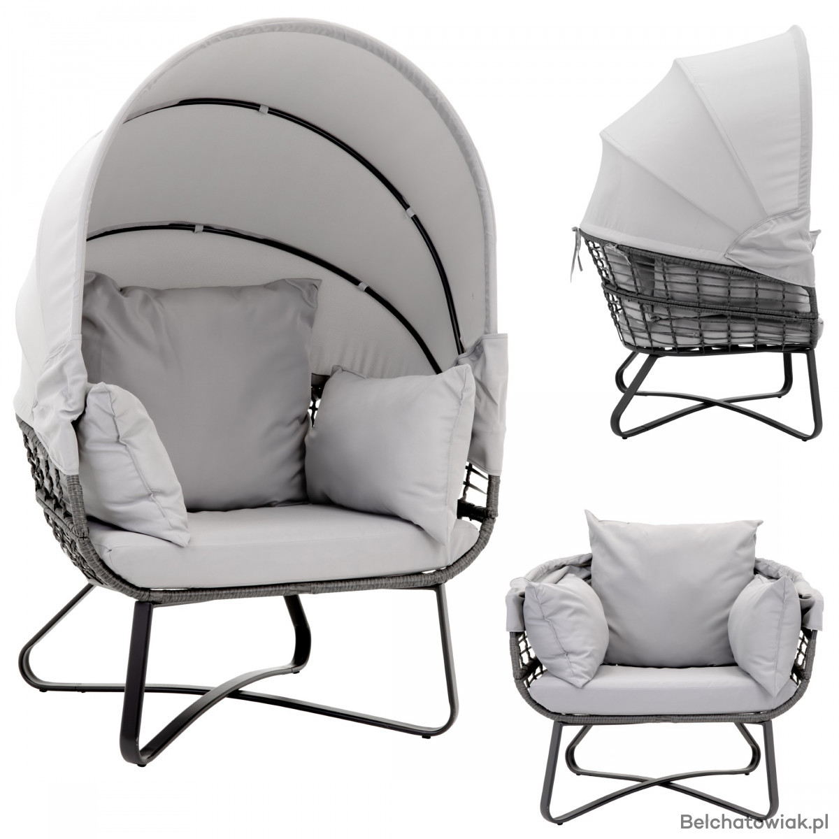 Szukasz prawdziwego miejsca do wypoczynku i ucieczki od codziennego zgiełku? Ten fotel typu kokon z daszkiem to prawdziwa oaza relaksu, gdzie możesz schować się przed słońcem, zatopić w lekturze lub po prostu delektować się chwilą ciszy.
