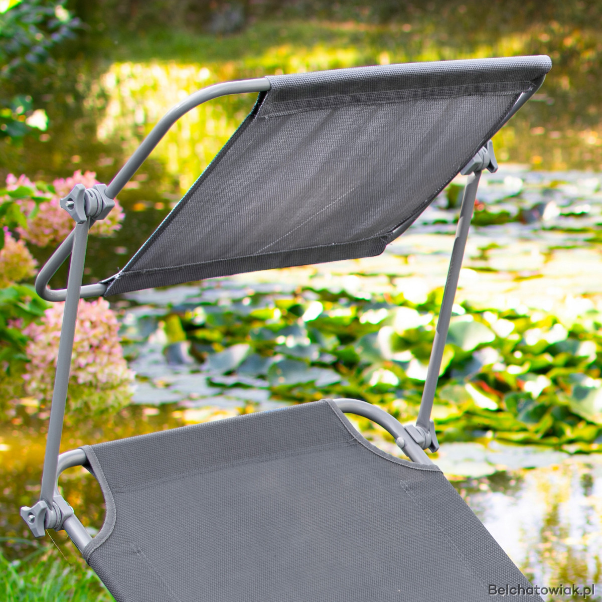 Składany leżak ogrodowy z daszkiem szary stalowy 2124 | Kowalczyk Meble