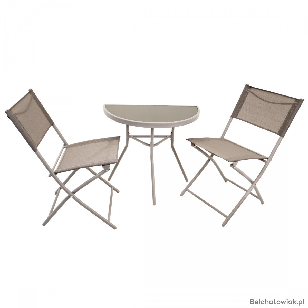 Zestaw doskonale sprawdzi się na niewielkim balkonie, tarasie lub w ogrodzie. Dzięki składanym krzesłom oraz kompaktowym wymiarom, meble łatwo przechowywać poza sezonem.