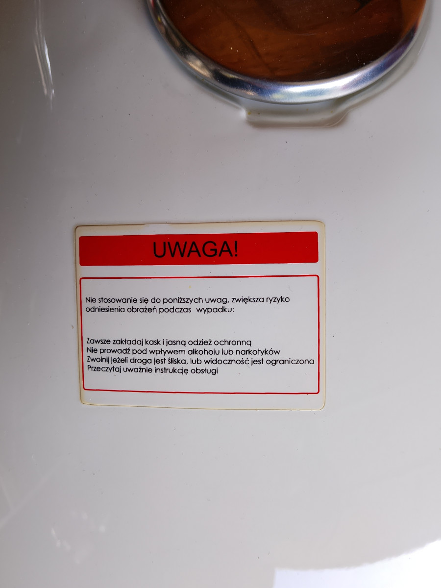 Jest nstrukcja obsługi, dowód rejestracyjny, karta pojazdu, dwa oryginalne kluczyki, kask.