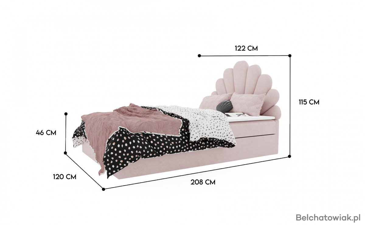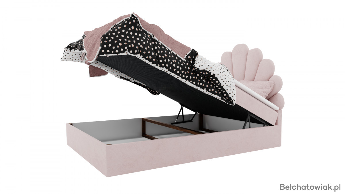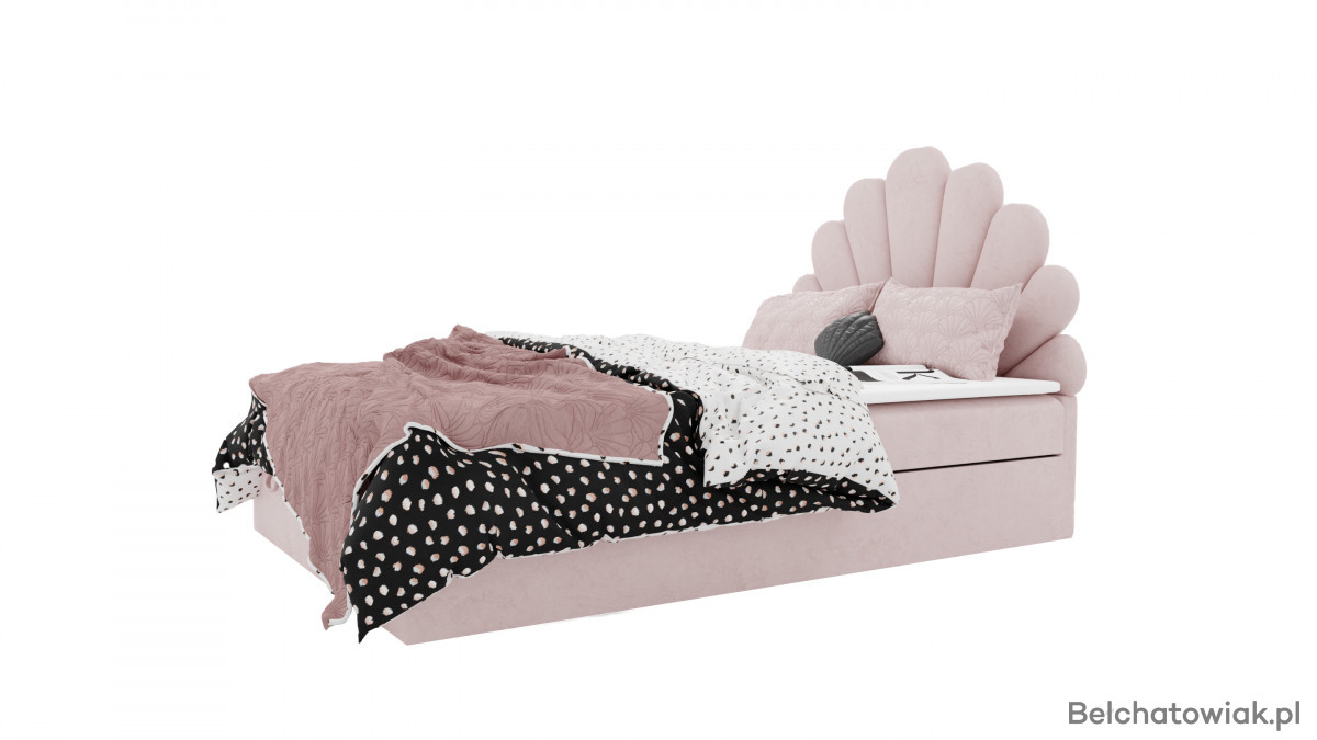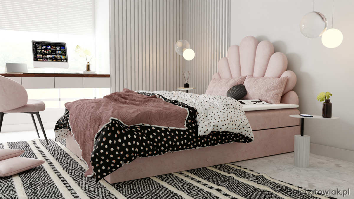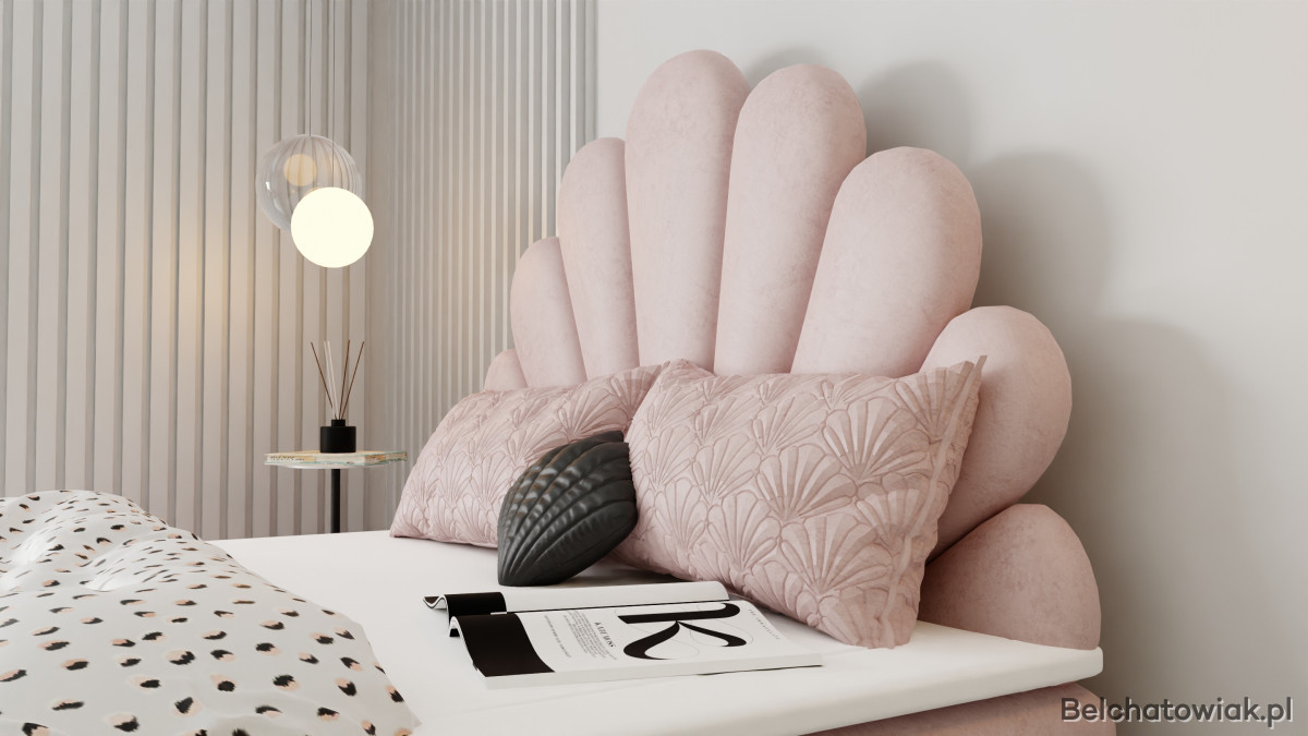 Łóżko KOTILO wyróżnia się niezwykłym zagłówkiem w formie delikatnej muszli. Ten dziewczęcy, subtelny design nadaje sypialni wyjątkowego charakteru i sprawia, że łóżko staje się centralnym punktem aranżacji. Elegancja połączona z wdziękiem tworzy atmosferę pełną przytulności i stylu.
