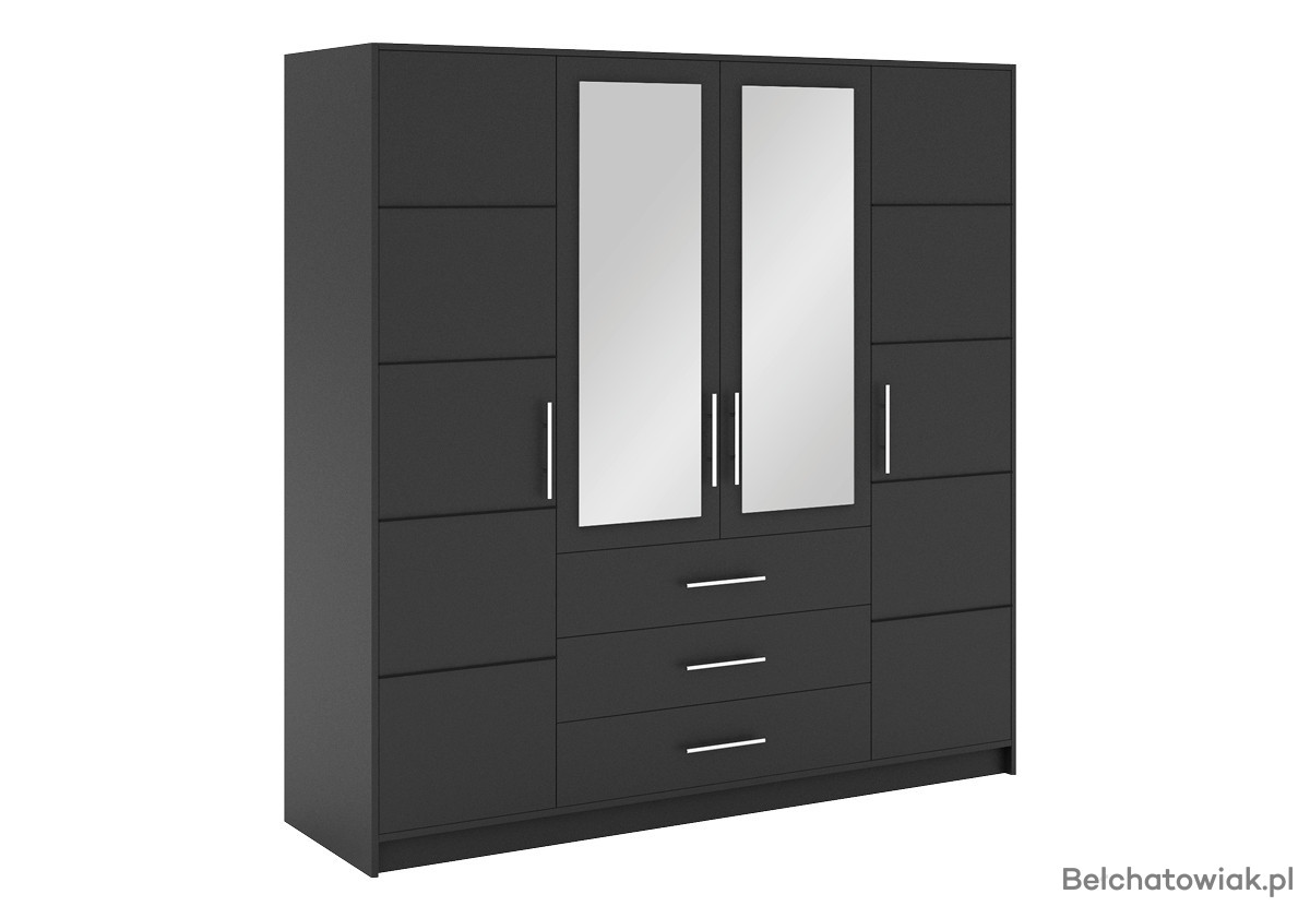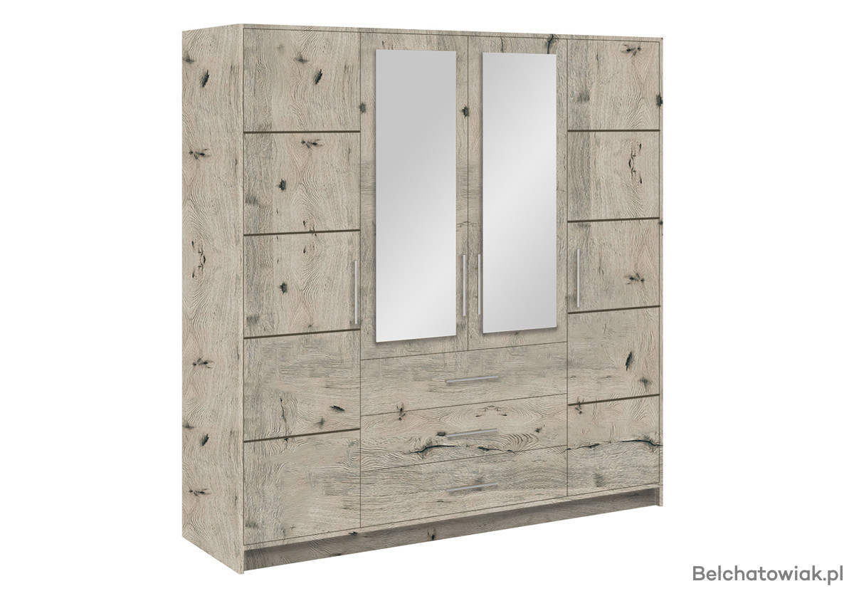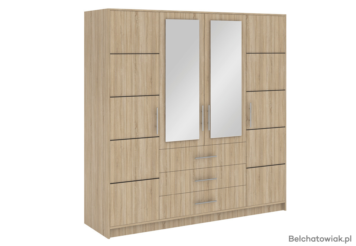 Elegancka szafa czterodrzwiowa z lustrem to idealne rozwiązanie dla osób poszukujących przestronnego i stylowego mebla do sypialni, garderoby czy przedpokoju. Lustro na froncie nie tylko dodaje elegancji, ale także optycznie powiększa wnętrze.