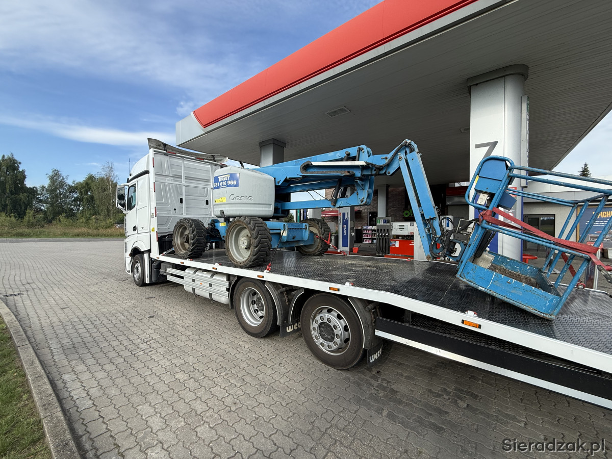 Oferuje transport lawetą ciężarową, ładowność 15,5t. Wciągarka, pełna podłoga najazdy po całej szerokości.