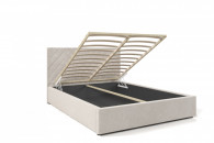 Łóżko BRAVO to model o wyjątkowym charakterze. Tapicerowane wezgłowie z ozdobnym wzorem jodełki przyciąga wzrok i nadaje wnętrzu niepowtarzalnego stylu.