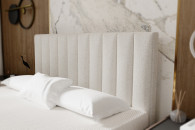 Klasyczne łóżko z eleganckim zagłówkiem – pionowe, symetryczne linie dodają wnętrzu wyjątkowego charakteru