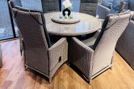Idealne meble do Twojego ogrodu jeśli poszukujesz stabilnego i wytrzymałego kompletu stołu i krzeseł. Ten praktyczny zestaw łączy w sobie nowoczesny design z funkcjonalnością. Krzesła posiadają bezstopniową regulację oparcia. Solidna, a zarazem lekka konstrukcja aliminiowa jest bardzo dużym plusem, maja uniwersalny kolor, dzięki czemu będą pasować do różnych akcesoriów ogrodowych i kolorowych poduszek dekoracyjnych. Zestaw charakteryzuje się wysoką odpornością na warunki atmosferyczne.