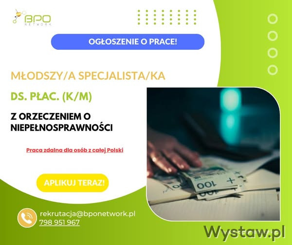 Młodszy Specjalista/Młodsza Specjalistka ds. płac. (K/M) z orzeczeniem o niepełnosprawności
